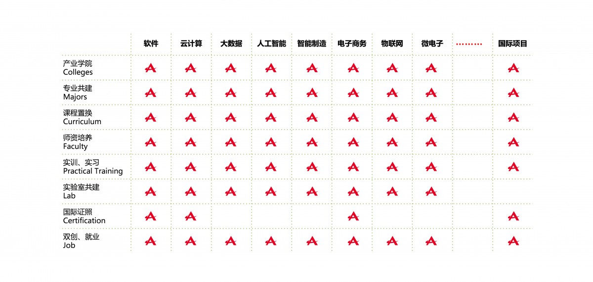 经过十余年的经验积累和成果沉淀,安博大学教育已经形成安博大学业务体系和创新模式,依托国家级科技成果以及澳客 云服务体系,与高校从项目合作、实训基地共建、专业共建到学院共建等多种模式开展多角度、全方位的合作,培养产业发展所需的实用型人才。